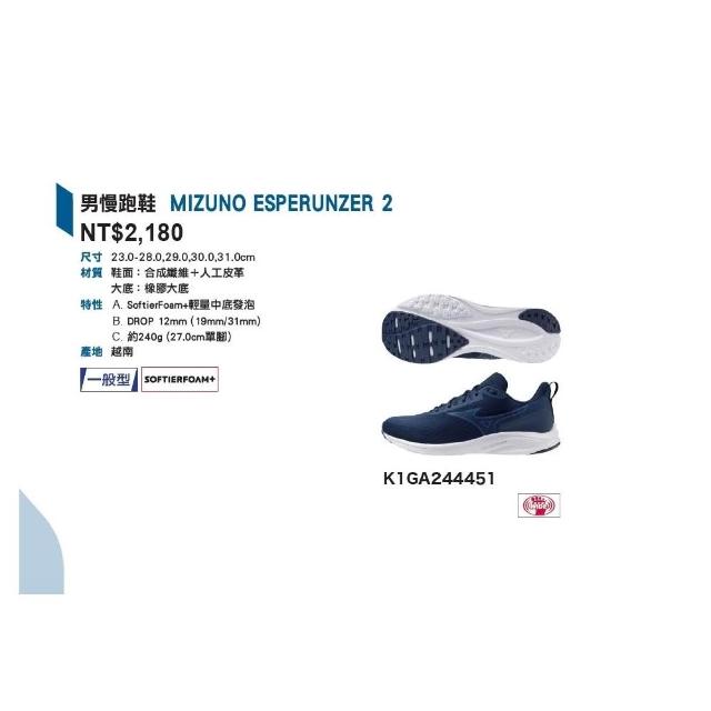 MIZUNO 美津濃MIZUNO 美津濃 基本款 男款 慢跑鞋 MIZUNO ESPERUNZER 2 K1GA244451
