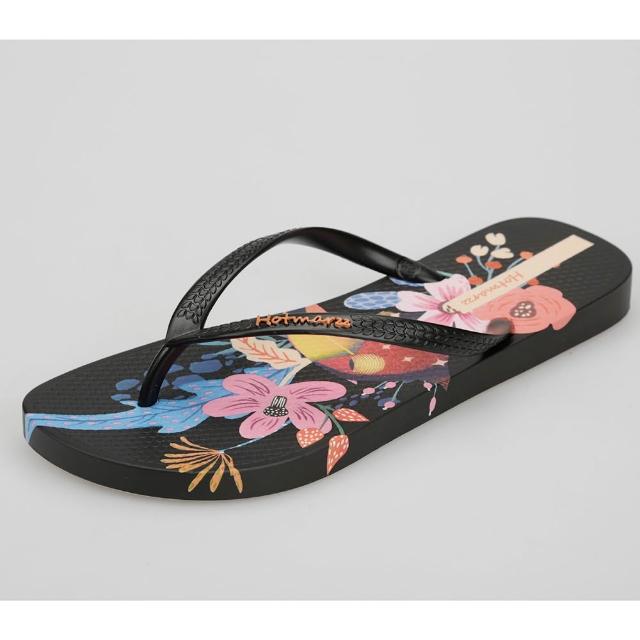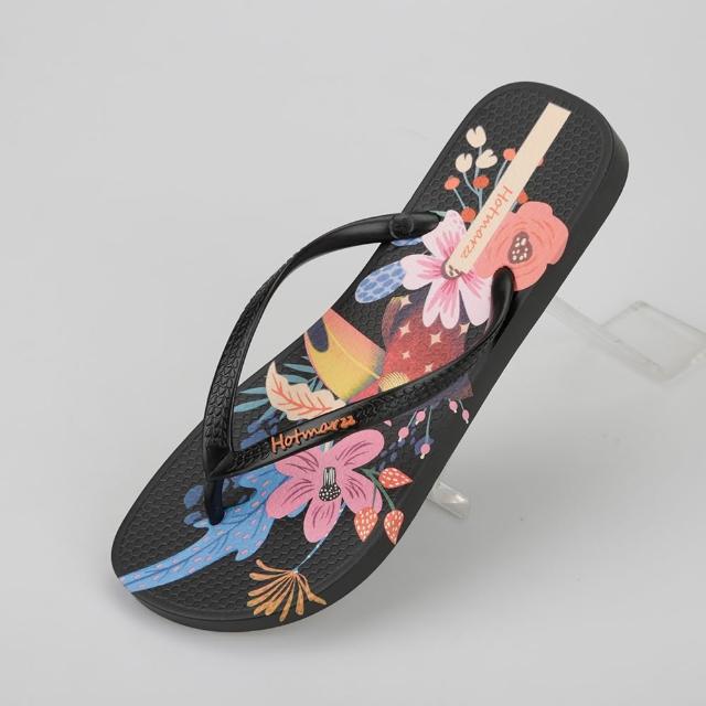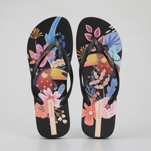 Hotmarzz 黑瑪 女款 人字拖 運動休閑涼拖鞋 夾腳拖 防滑印花沙灘拖 HM7100A-01