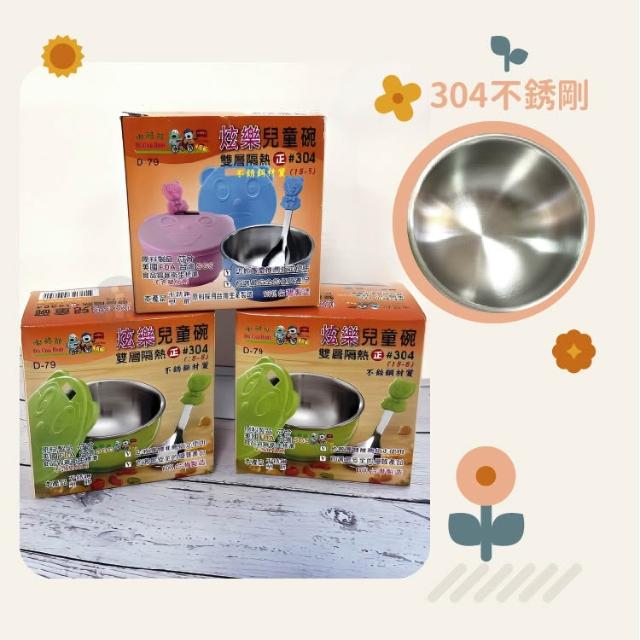 嘟酷熊 三色碗 炫樂 雙層隔熱兒童碗 附蓋子湯匙 不鏽鋼碗 飯碗 湯碗 幼兒園碗 兒童餐具 附碗蓋
