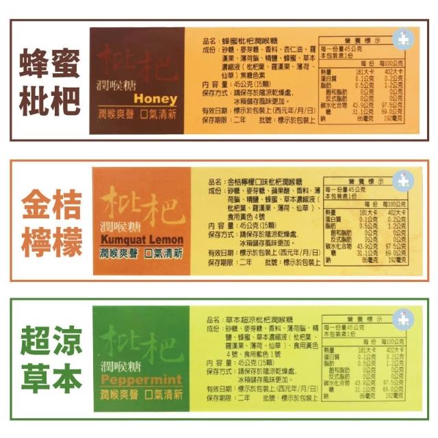 枇杷潤喉糖(15粒) 超涼草本/蜂蜜枇杷/金桔檸檬 三款可選