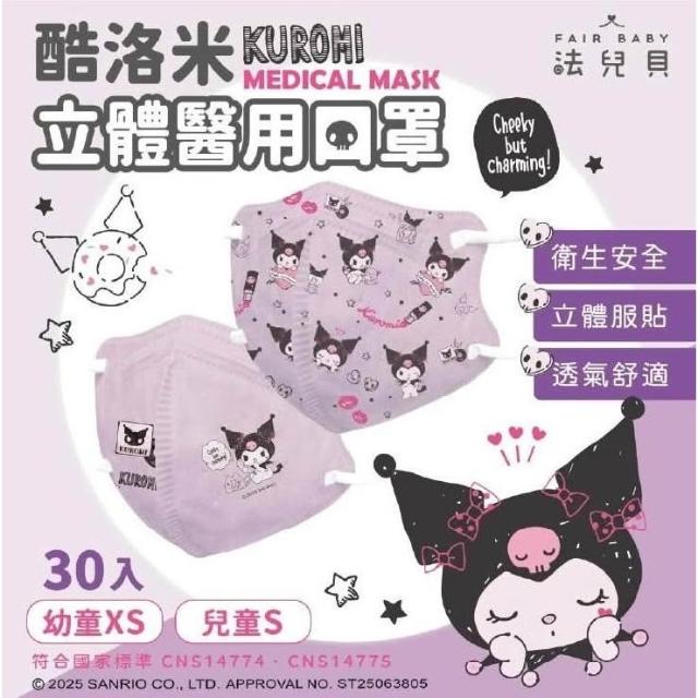 法兒貝 三麗鷗 酷洛米 美樂蒂 大耳狗 布丁狗 幼童 兒童 醫用 鬆緊帶 立體 3D口罩(30入) 禾坊藥局