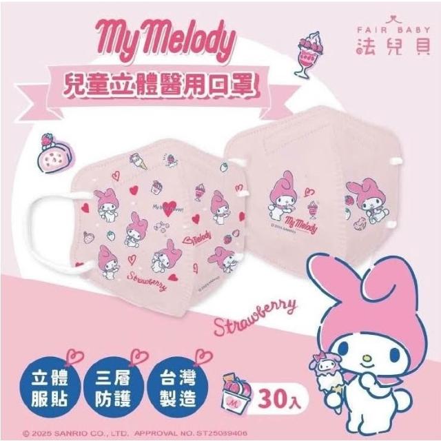 法兒貝 三麗鷗 酷洛米 美樂蒂 大耳狗 布丁狗 幼童 兒童 醫用 鬆緊帶 立體 3D口罩(30入) 禾坊藥局