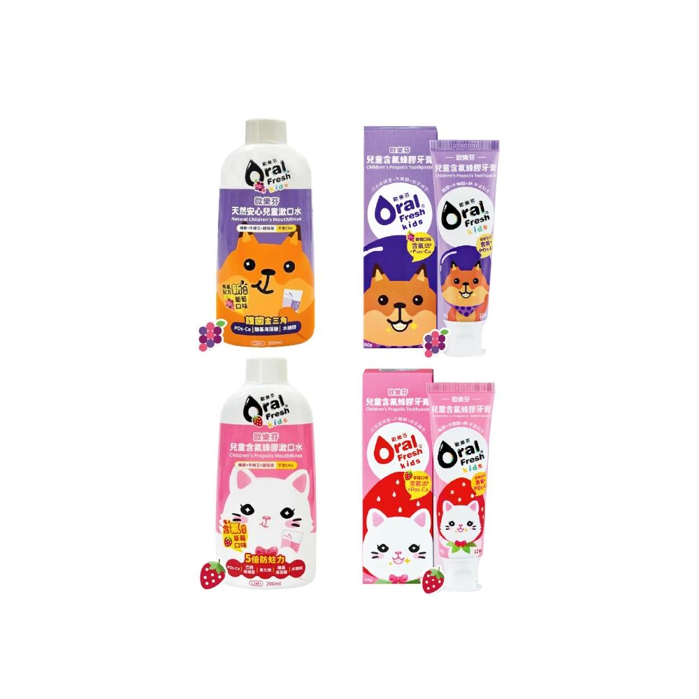 歐樂芬含氟蜂膠漱口水200mL 蜂膠牙膏 60g 草莓 葡萄 兒童牙膏