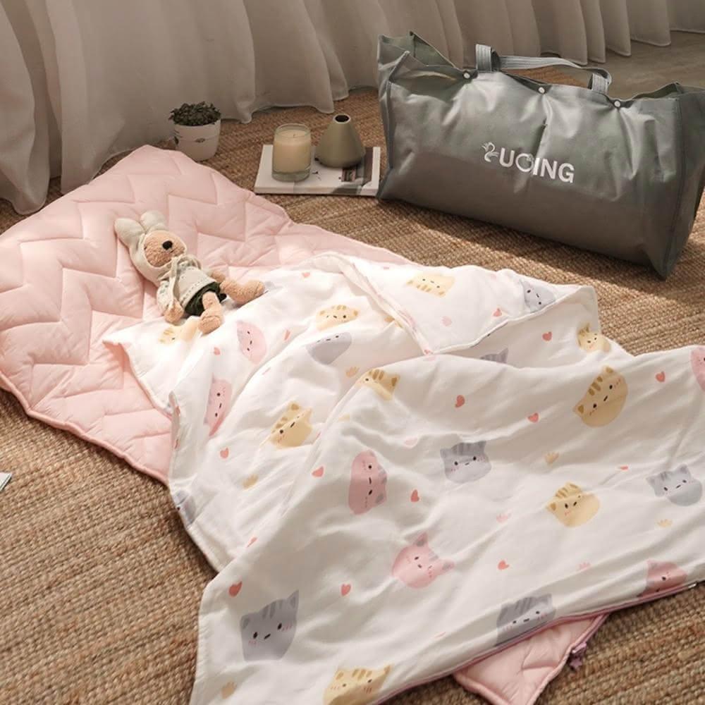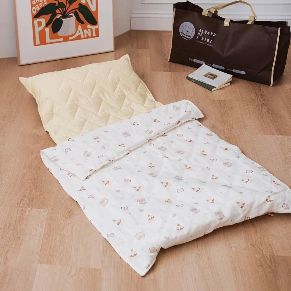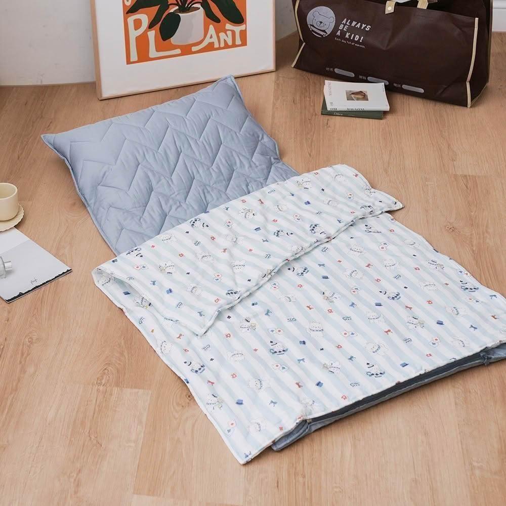 雙層紗純棉透氣兒童睡墊四季被三件組-四季被+枕芯+鋪棉睡墊/兒童鋪眠床墊 /幼兒園睡袋-附不織布收納台灣製