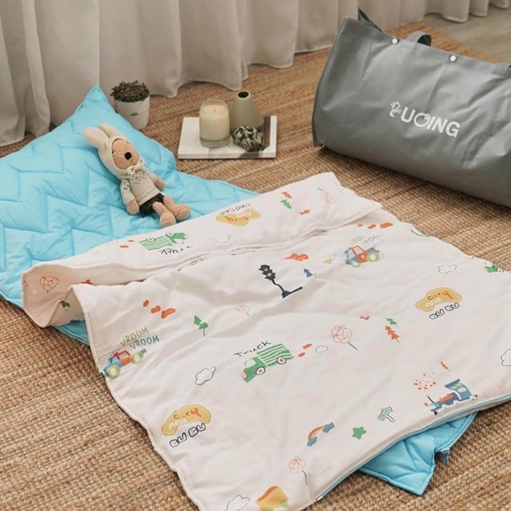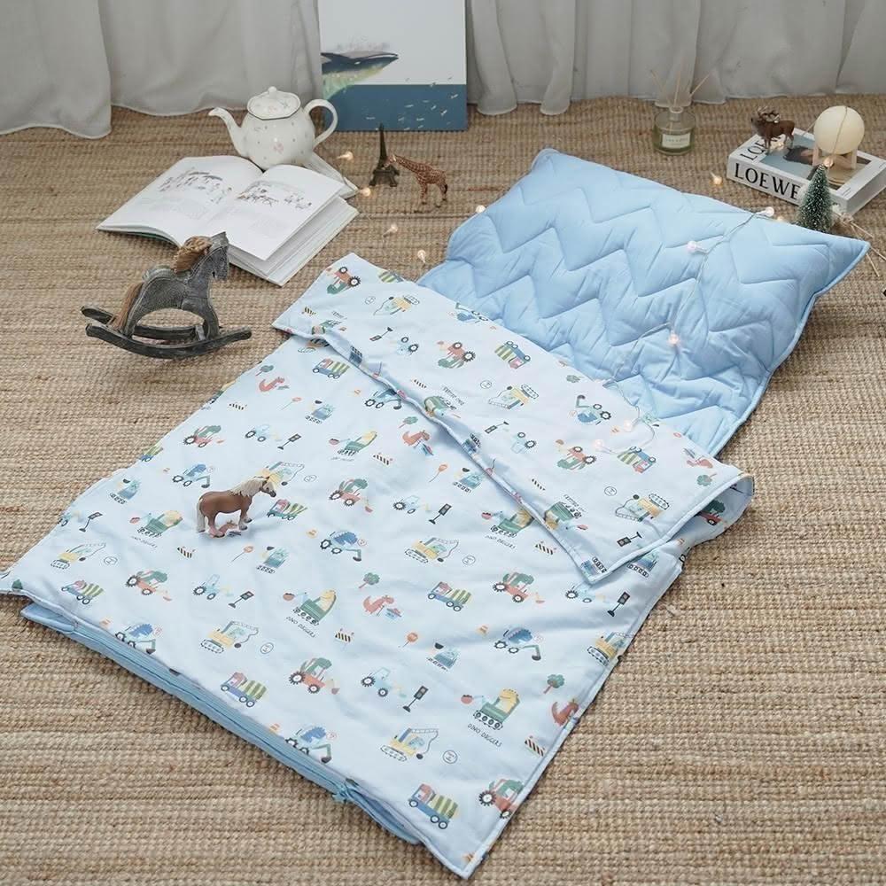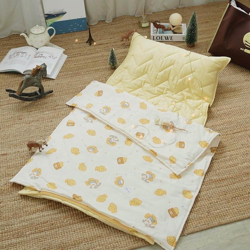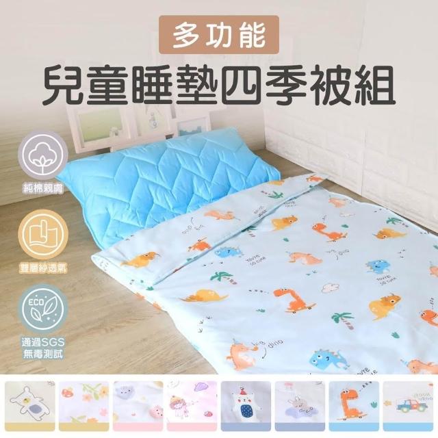 雙層紗純棉透氣兒童睡墊四季被三件組-四季被+枕芯+鋪棉睡墊/兒童鋪眠床墊 /幼兒園睡袋-附不織布收納台灣製