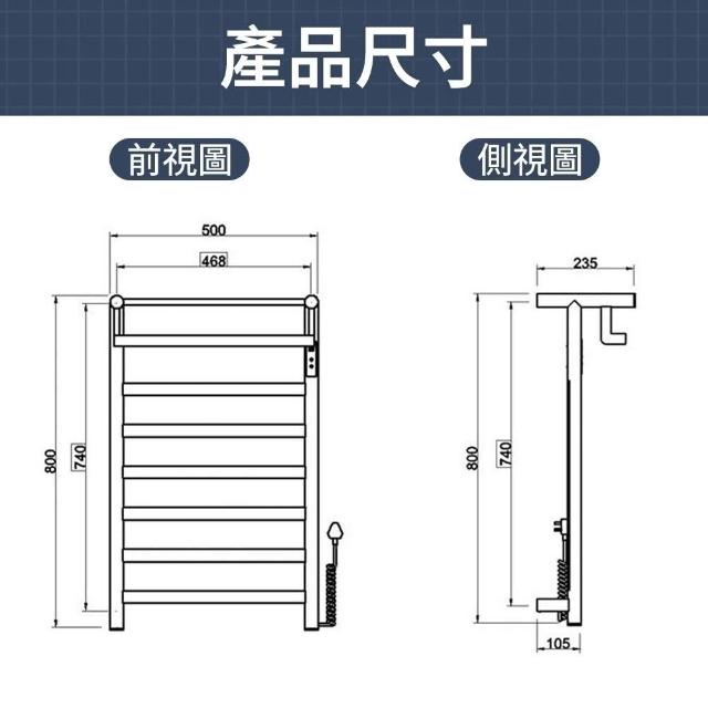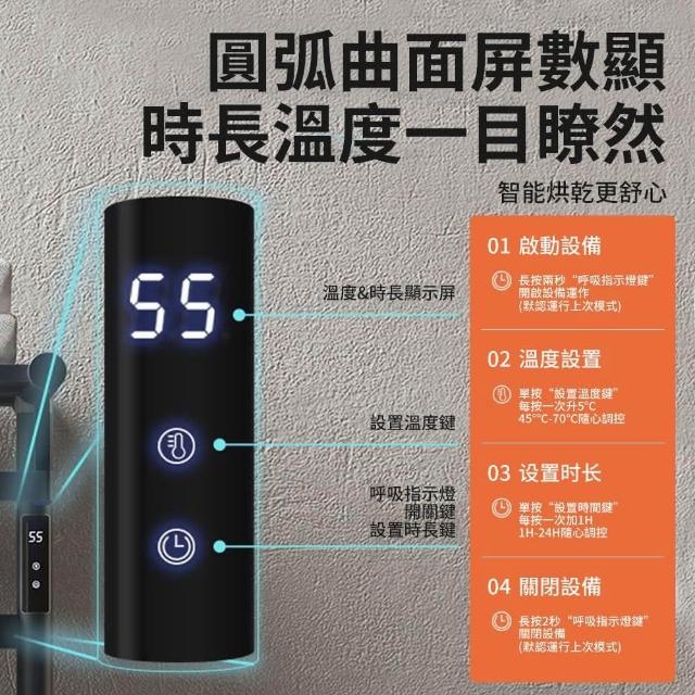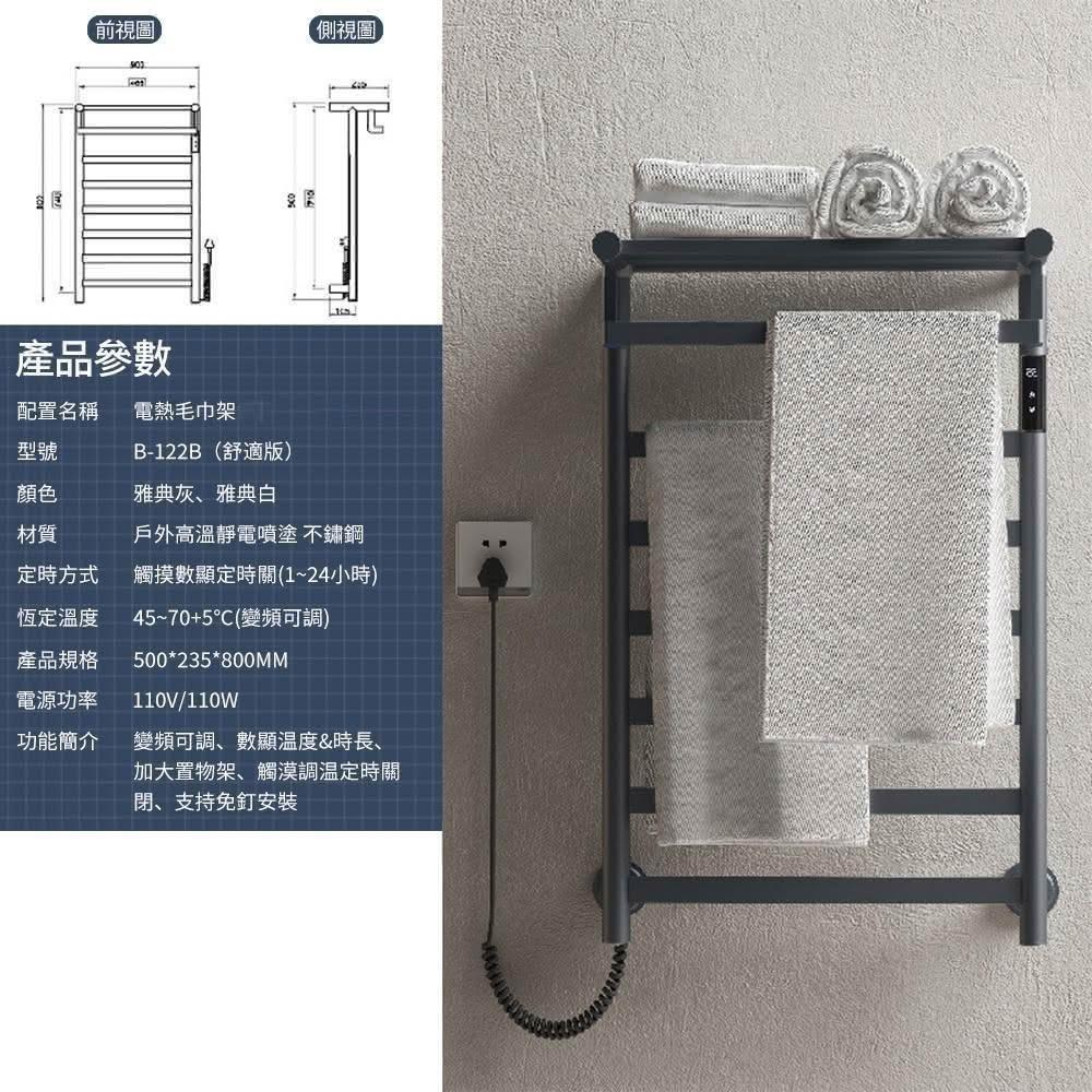 INLIN 整機加熱 電熱毛巾架110V(浴室衛生間不鏽鋼置物架 恒溫毛巾桿 R122B智慧浴巾架定時烘乾架)
