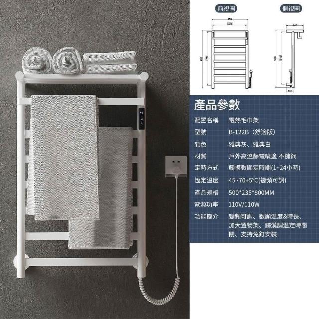 INLIN 整機加熱 電熱毛巾架110V(浴室衛生間不鏽鋼置物架 恒溫毛巾桿 R122B智慧浴巾架定時烘乾架)