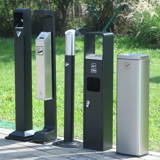 戶外落地煙灰缸大號不銹鋼煙灰柱立式滅煙柱煙頭垃圾桶煙蒂收集器(垃圾桶)