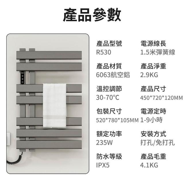 電熱毛巾架智能毛巾加熱碳纖維家用衛生間發熱烘乾浴巾架置物架