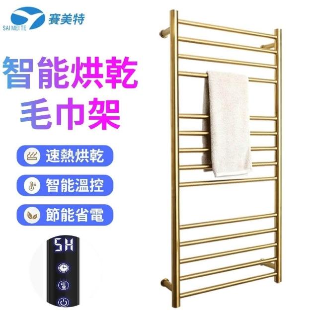 304不銹鋼電熱毛巾架(110V智能恆溫烘乾架 衛生間 浴室浴巾架 金色加熱毛巾桿 置物架 9006)