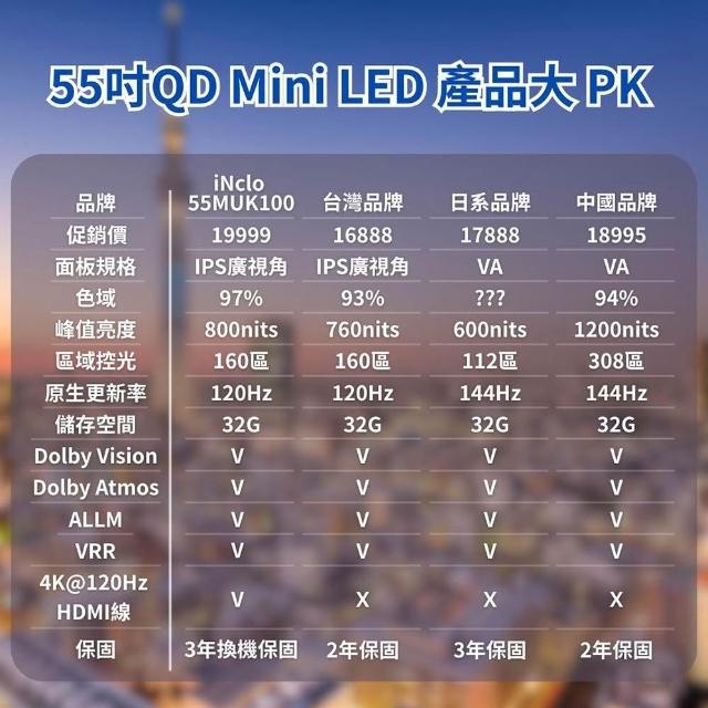 iNclo55吋 QD Mini LED Google TV 智慧顯示器|智慧電視,55MUK100