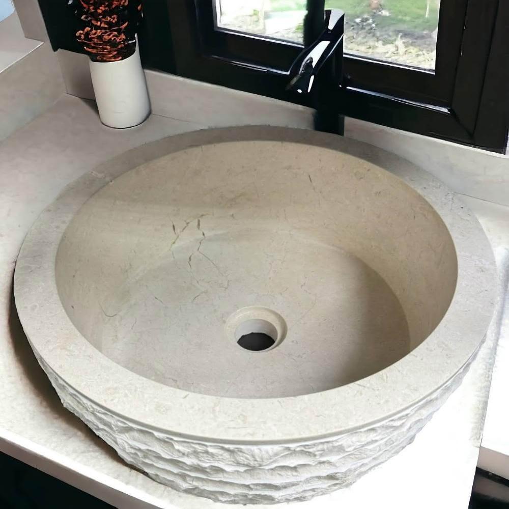 石意景觀石材大理石碗型洗手砵A💎拉溝荔面 石頭 缽 淺盆 風水盆 石缽 盆器 聚寶盆 洗手盆 水缸