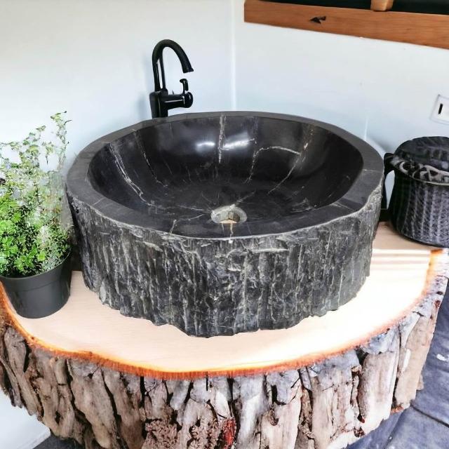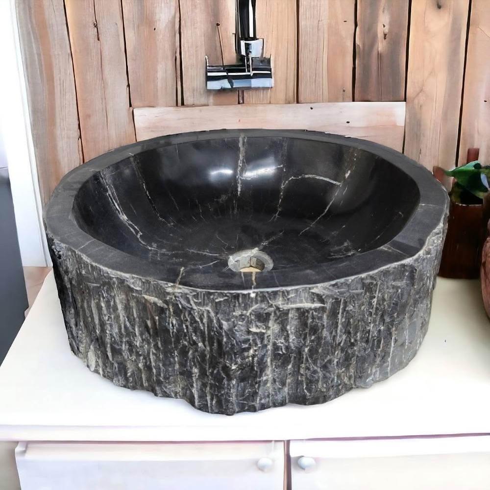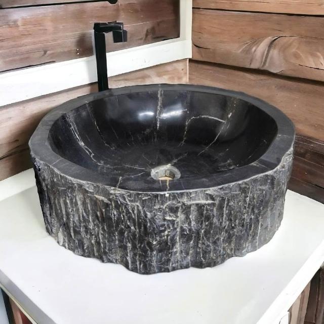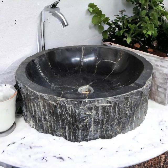 石意景觀石材黑炭玉樹化石洗手砵A💎自然風格 原石 缽 戶外 風水盆 石缽 茶洗 盆器 聚寶盆 洗手盆 水缸