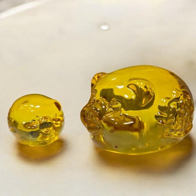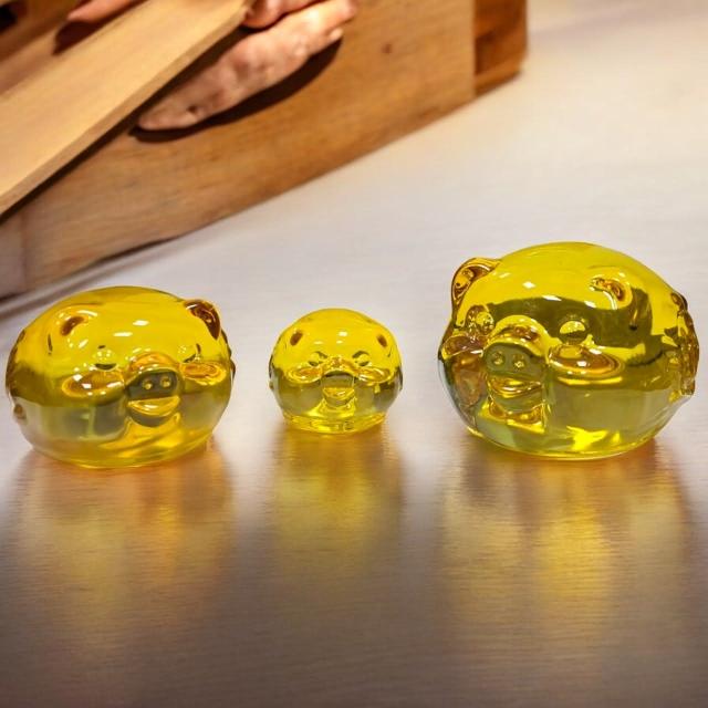石意景觀石材琉璃金豬5-9cm💎 琉璃 小擺件 金條 元寶 招財 聚寶盆 金牛 如意 開運 五帝錢 木底座