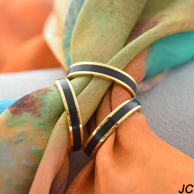 JC Collection百變披肩圍巾絲巾郎三環扣環(白色、黑色)