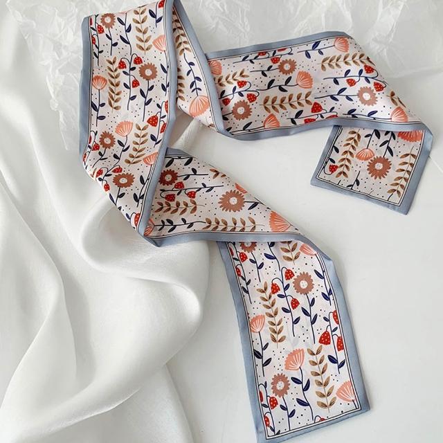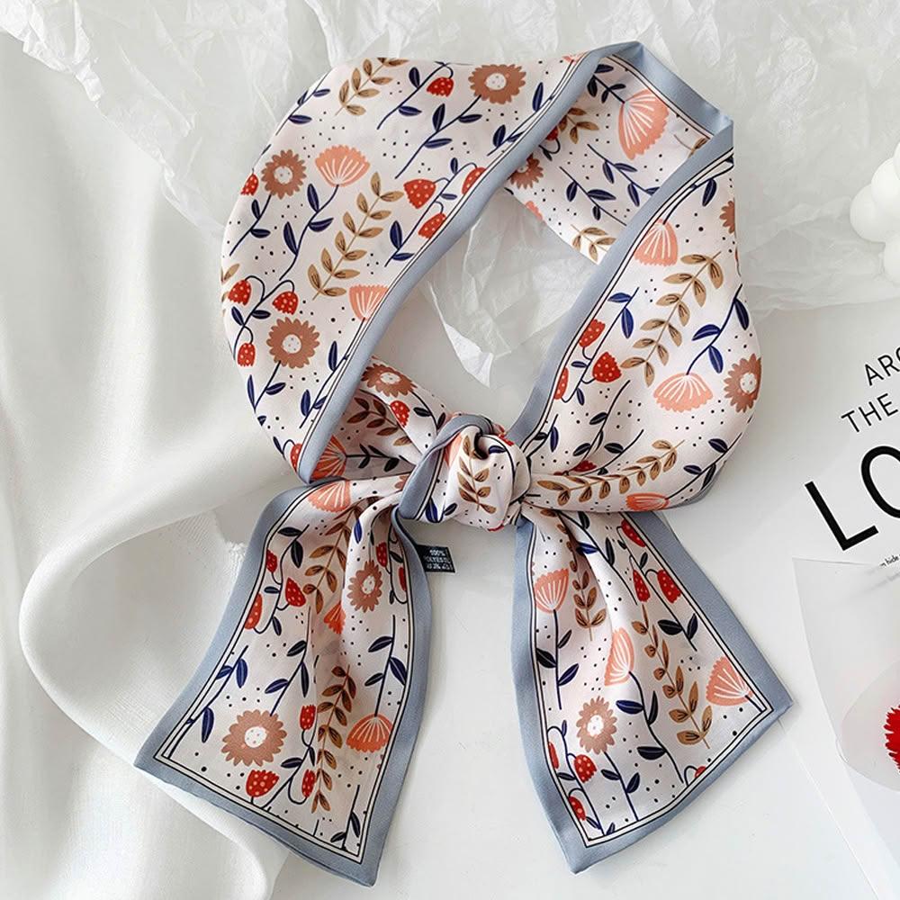 JC Collection🔥台灣現貨🔥氣質清爽花卉印花髮飾頭巾綁包長條領巾絲巾|優雅百搭