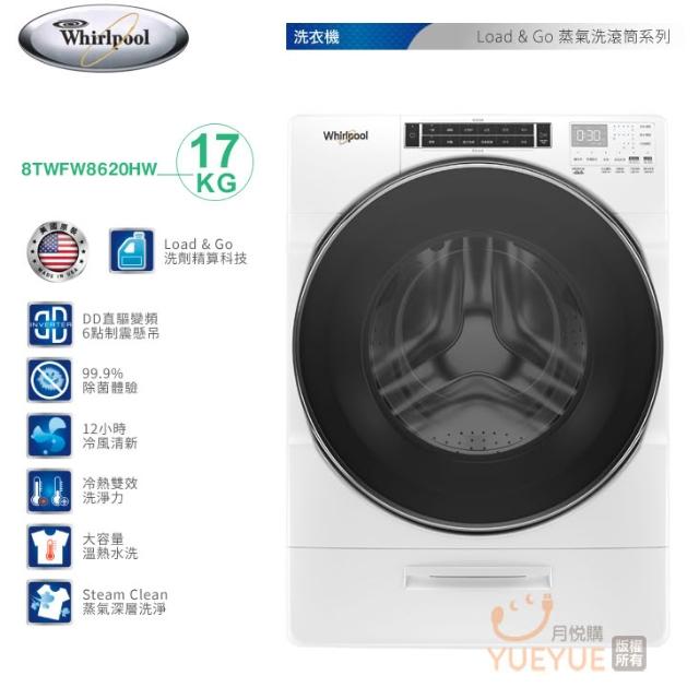 Whirlpool 惠而浦( 8TWFW8620HW ) 17KG 美製 Load & Go 蒸氣變頻滾筒洗衣機《送基本安裝、舊機回收》