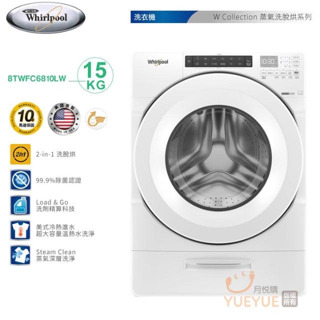 Whirlpool 惠而浦( 8TWFC6810LW ) 15KG 美製 Load & Go 蒸氣洗滾筒洗脫烘《送基本安裝、舊機回收》