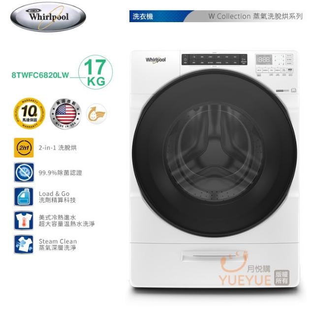 Whirlpool 惠而浦( 8TWFC6820LW ) 17KG 美製 Load & Go 蒸氣洗滾筒洗脫烘《送基本安裝、舊機回收》