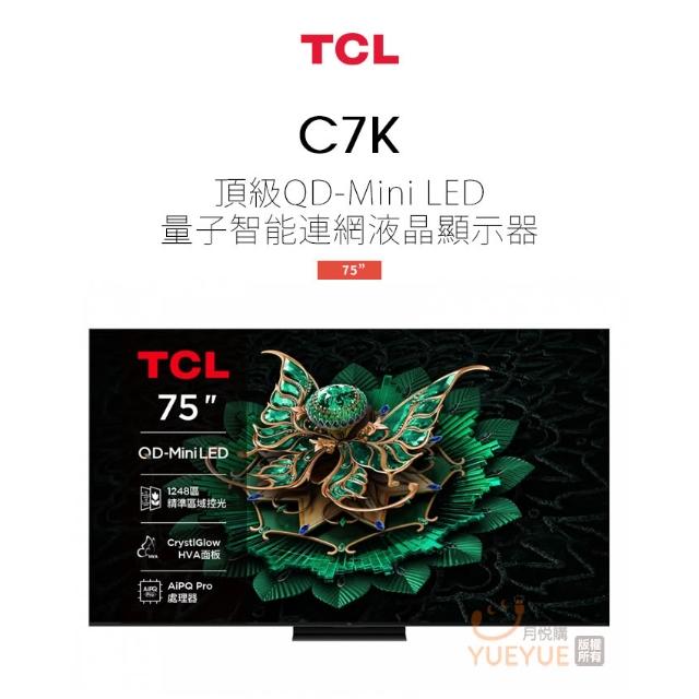 TCL ( 75C7K ) 75型【C7K系列】QD-Mini LED Google TV 量子智能連網液晶顯示器