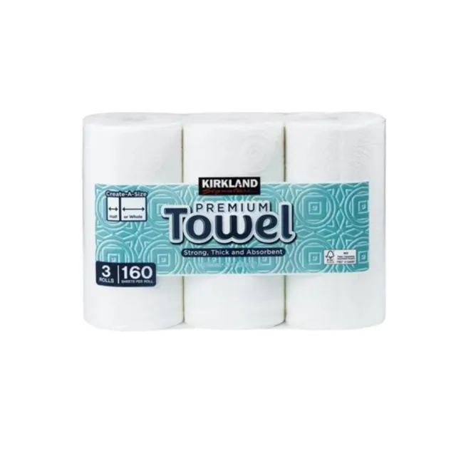 Kirkland Signature 科克蘭好市多廚房紙巾 科克蘭廚房紙巾 新包裝 3捲裝 1捲160張 costco廚房紙巾 廚房紙巾 隨意撕特級廚房紙巾 廚房紙巾 科克蘭廚房紙巾