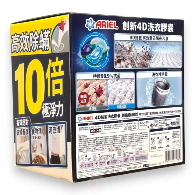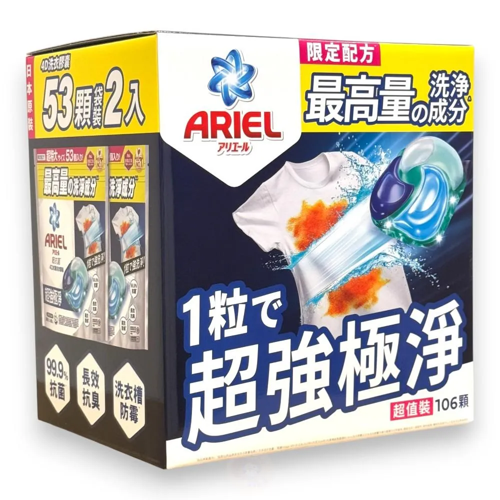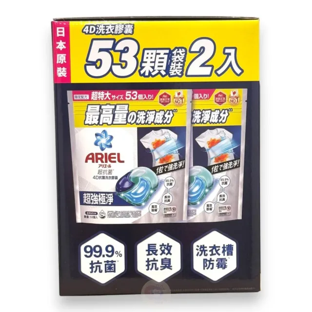 ARIELAriel 4D 抗菌抗蟎洗衣膠囊 53顆 X 2袋入 Ariel洗衣膠囊 好市多洗衣膠囊 ariel洗衣球