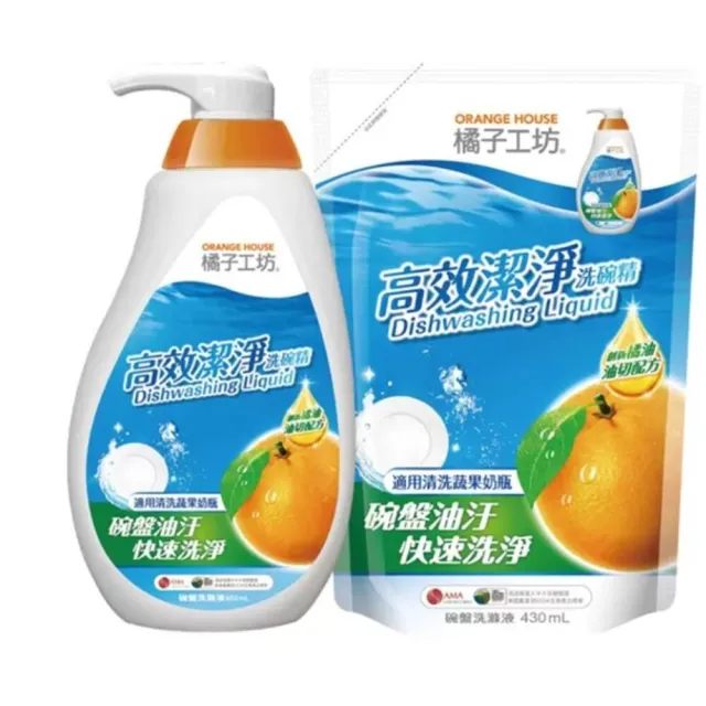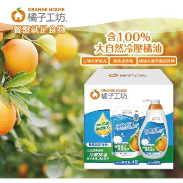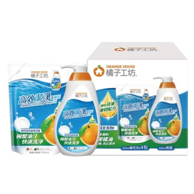 Orange house 橘子工坊橘子工坊 高效潔淨洗碗精 650毫升+補充包 430毫升 X 4入 橘子工坊洗碗精 好市多洗碗精