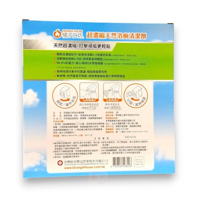 Orange house 橘子工坊橘子工坊 超濃縮天然浴廁清潔劑 480毫升+補充包450毫升X4入