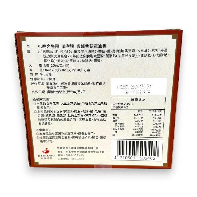 寒舍集團寒舍集團 請客樓 香菇麻油飯 200公克X8包
