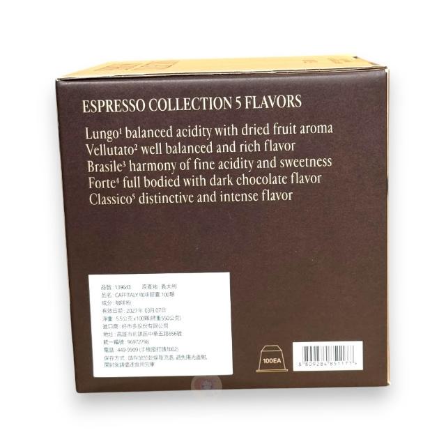 Caffitaly 100顆咖啡膠囊組 內含5種風味 適用於Nespresso咖啡機