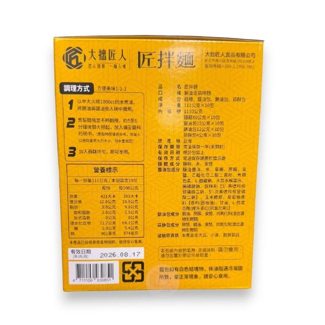大拙匠人匠拌麵 鵝油金蒜拌麵 111公克X10包