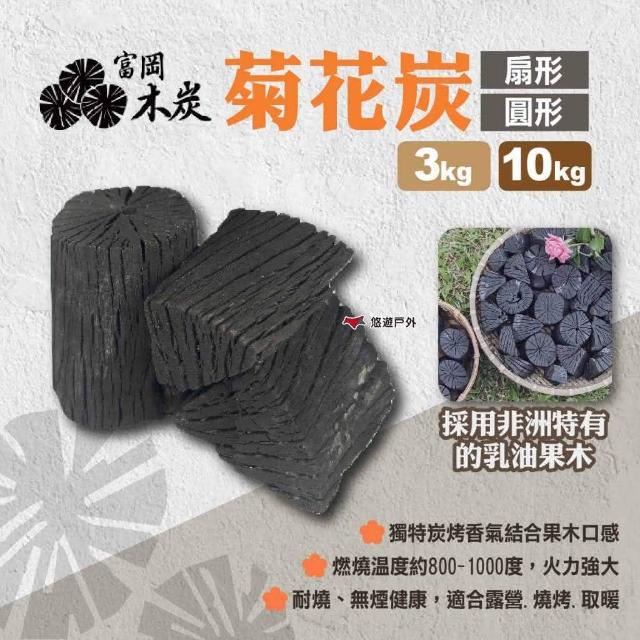 富岡木炭 菊花炭 扇形/圓形 3KG/10KG 悠遊戶外
