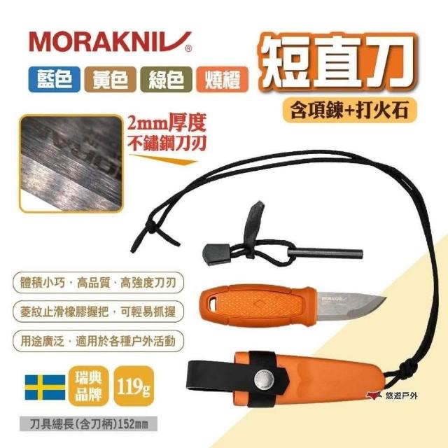 MORAKNIV 短直刀含項鍊+打火石 多色 瑞典國刀 莫拉刀 不鏽鋼直刀 短刀 野營刀 登山刀 露營 悠遊戶外