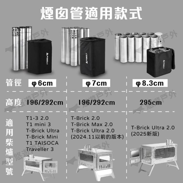 POMOLY Φ6/7/8.3純鈦組合式煙囪管 196/292/295cm/45度轉角管 悠遊戶外