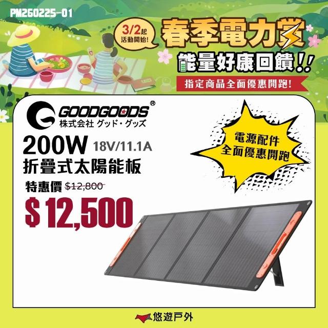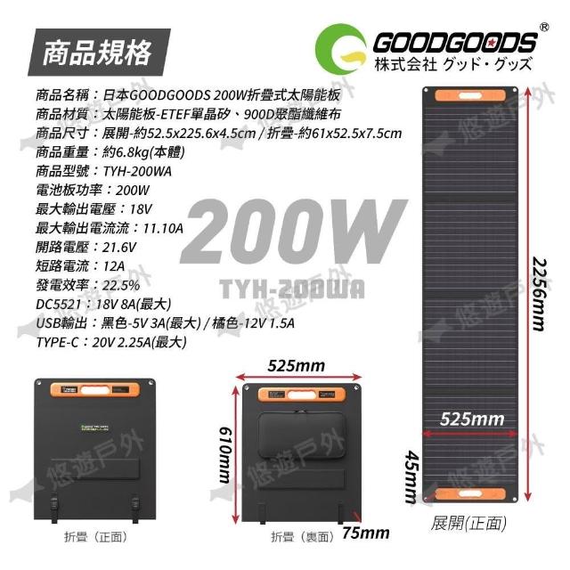 日本GOODGOODS 200W 折疊式太陽能板 露營 悠遊戶外