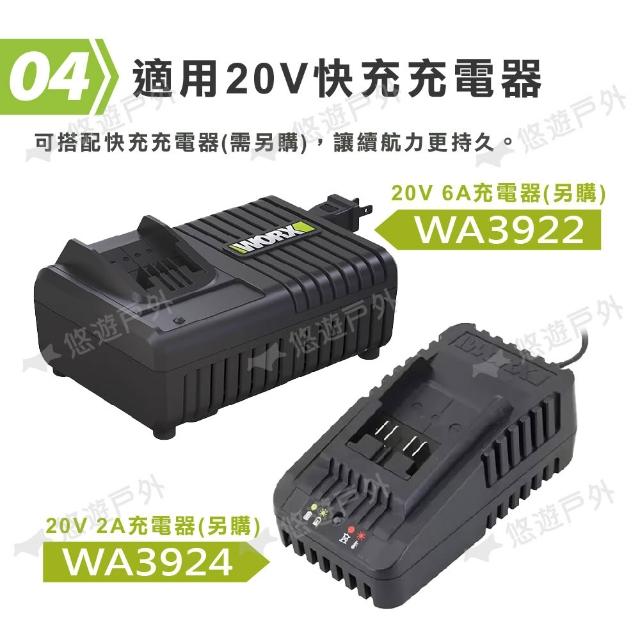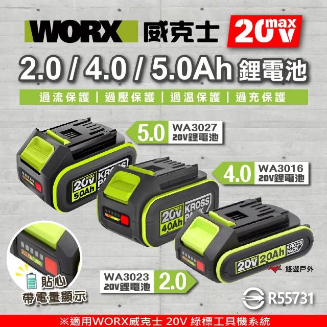 WORX 威克士20V 2.0/4.0/5.0Ah 鋰電電池 WA3016.23.27 適用20V綠標工具 悠遊戶外