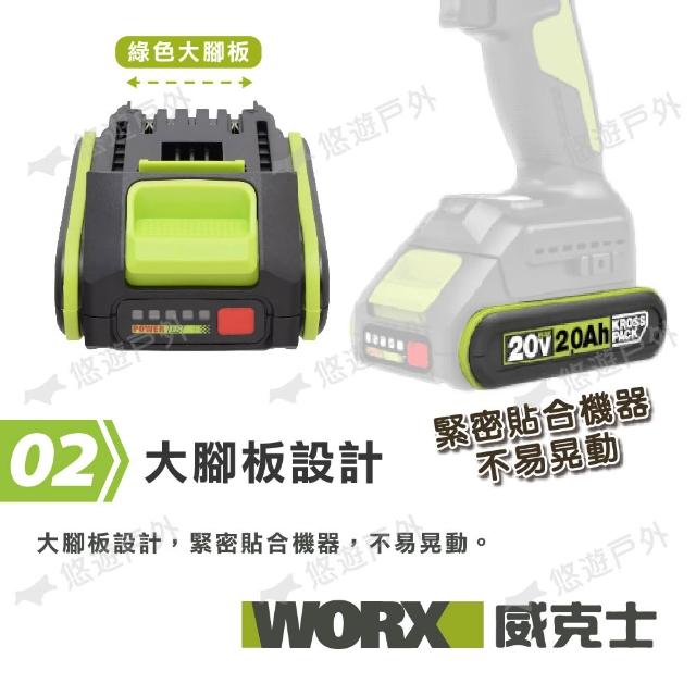 WORX 威克士20V 2.0/4.0/5.0Ah 鋰電電池 WA3016.23.27 適用20V綠標工具 悠遊戶外