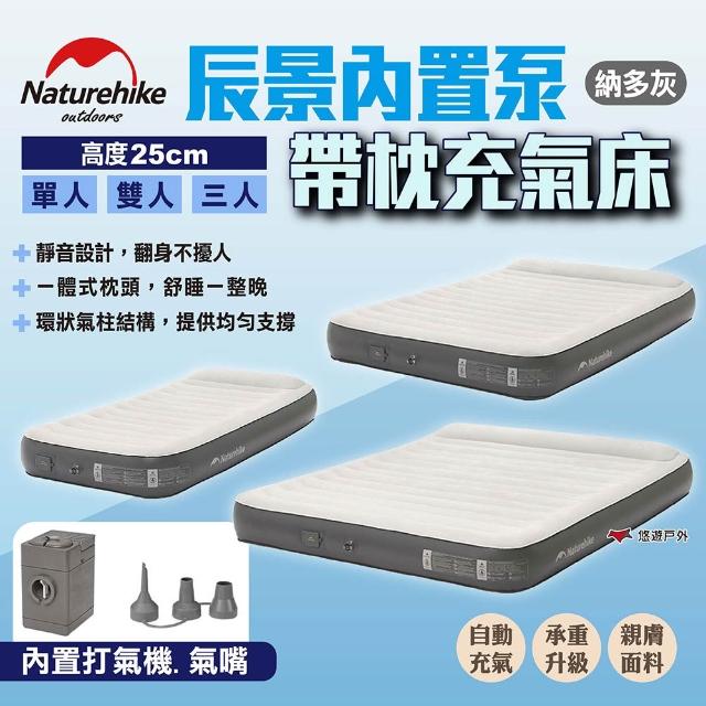 NaturehikeNaturehike 挪客 辰景內置泵帶枕充氣床25cm 單人/雙人/三人 納多灰 悠遊戶外