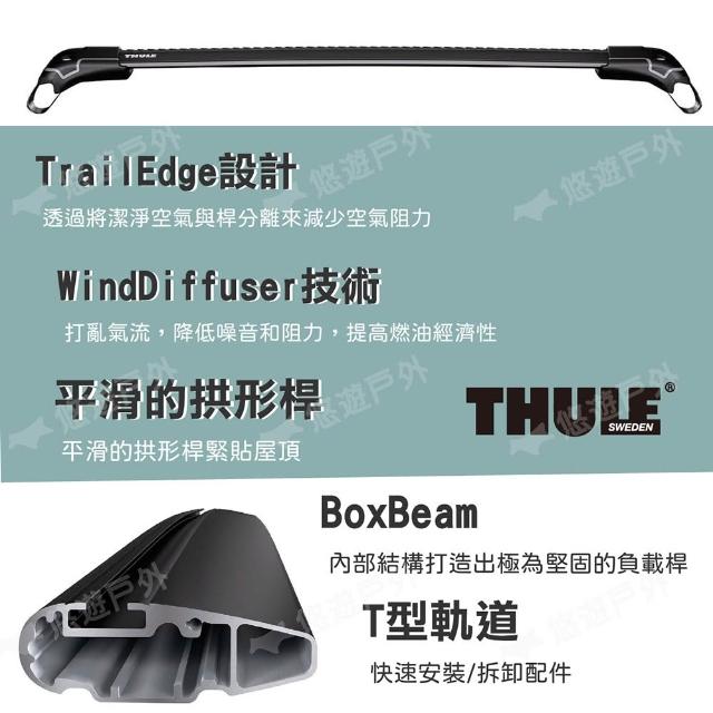 Thule 都樂Thule WingBar Edge 架高縱桿包覆型橫桿組 兩支一組 悠遊戶外