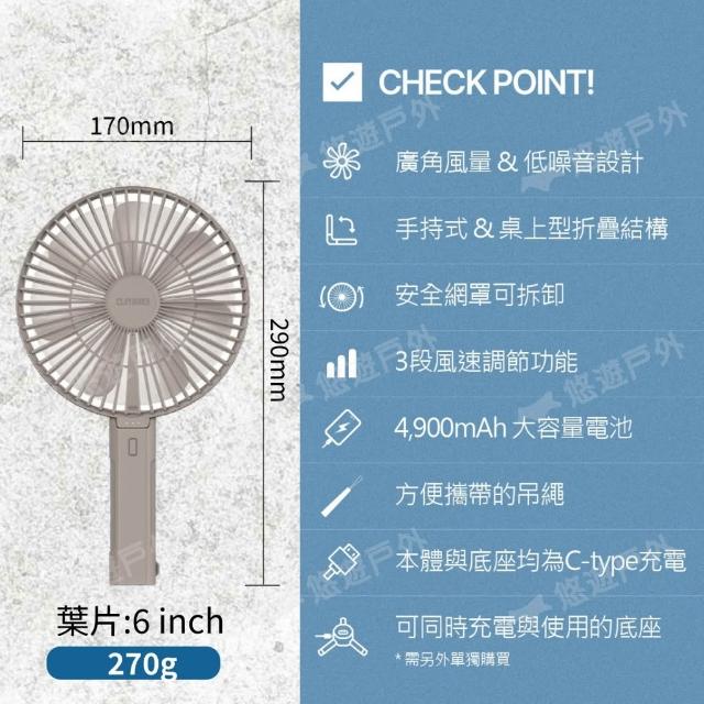 CLAYMORECLAYMORE 加大手持折疊風扇 / 專用充電底座 悠遊戶外