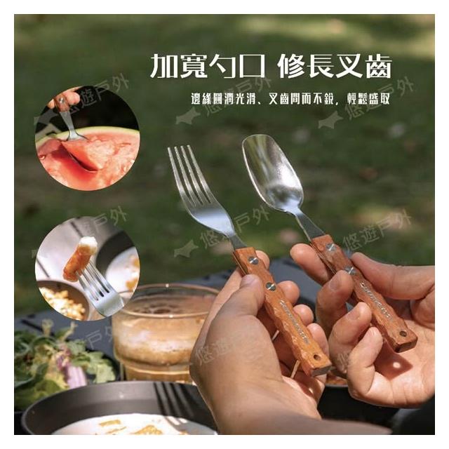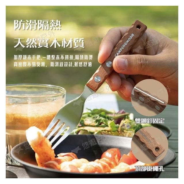 Campingmoon 柯曼柯曼 野餐叉勺 CS-23 304食品級不鏽鋼 加厚天然鐵木 人體工學 野餐 叉子 湯匙 登山 野炊 露營 悠遊戶外