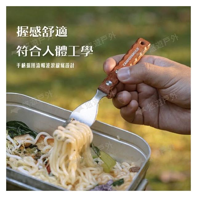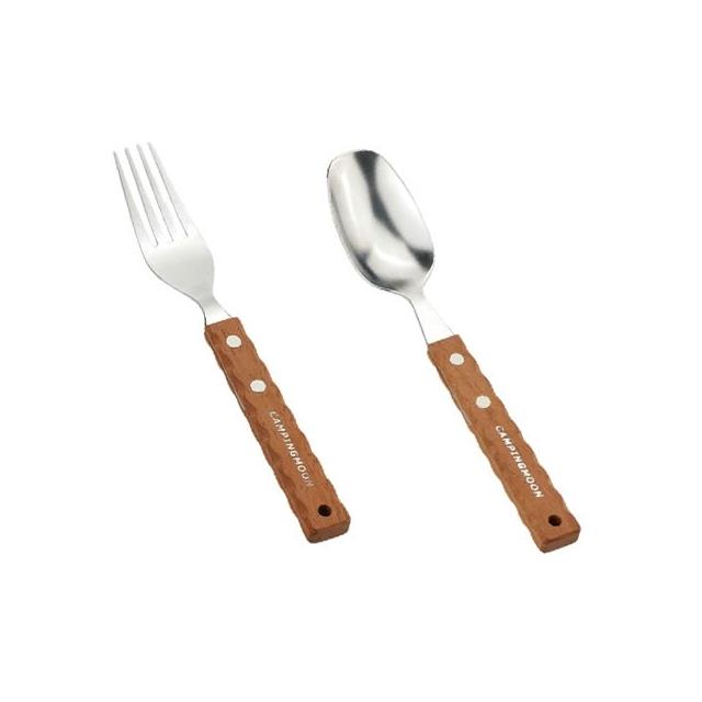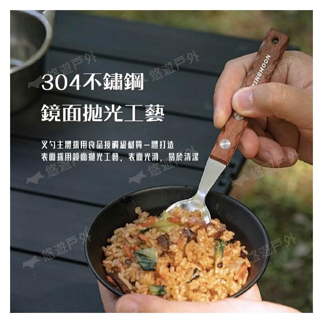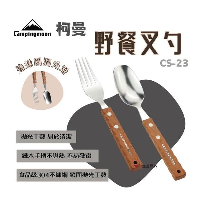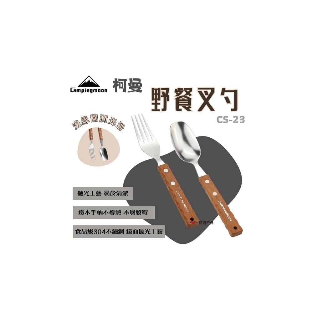 Campingmoon 柯曼柯曼 野餐叉勺 CS-23 304食品級不鏽鋼 加厚天然鐵木 人體工學 野餐 叉子 湯匙 登山 野炊 露營 悠遊戶外