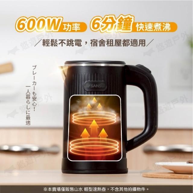 SANSUI 山水輕型速熱壺 黑/沙 SWB-C08-B/S 低功率輕便煮水壺 熱水壺 快煮壺 野炊 露營 悠遊戶外