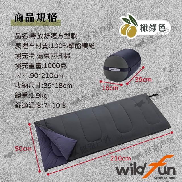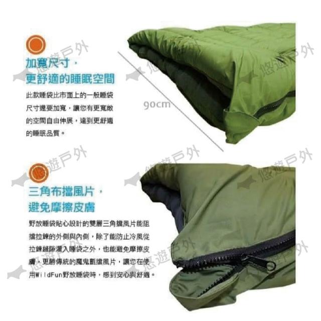 WildFun 野放Wildfun 野放加大舒適方型睡袋 CX009 橄綠色 YKK拉鍊升級 加大保暖 登山 露營 悠遊戶外