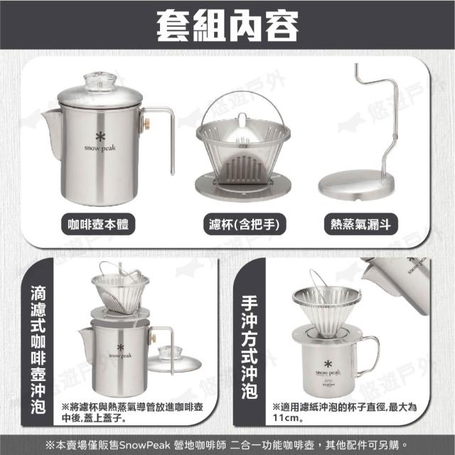 Snow Peak營地咖啡師 二合一功能咖啡壺 PR-880 可拆卸式手柄 手沖 滴濾 咖啡壺 野炊 露營 悠遊戶外