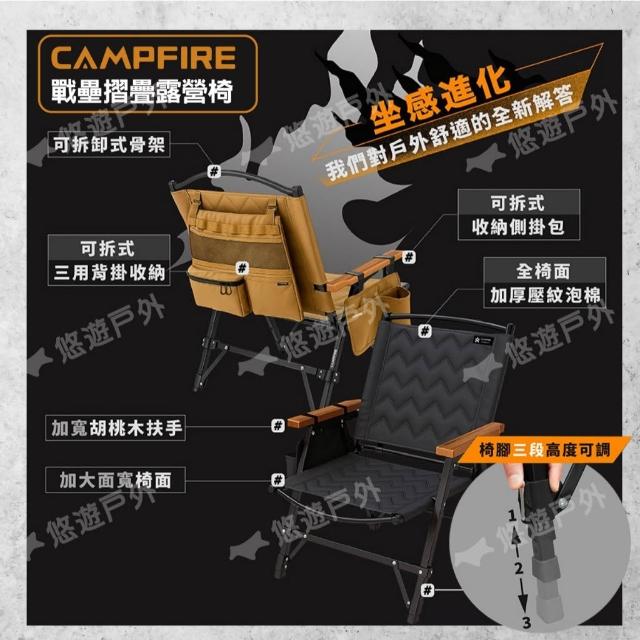 CAMPFIRECAMPFIRE 戰壘折疊露營椅 極黑/鈦灰/沙漠 椅腳可調高度 摺疊快收 多用途背掛包 登山 野炊 露營 悠遊戶外