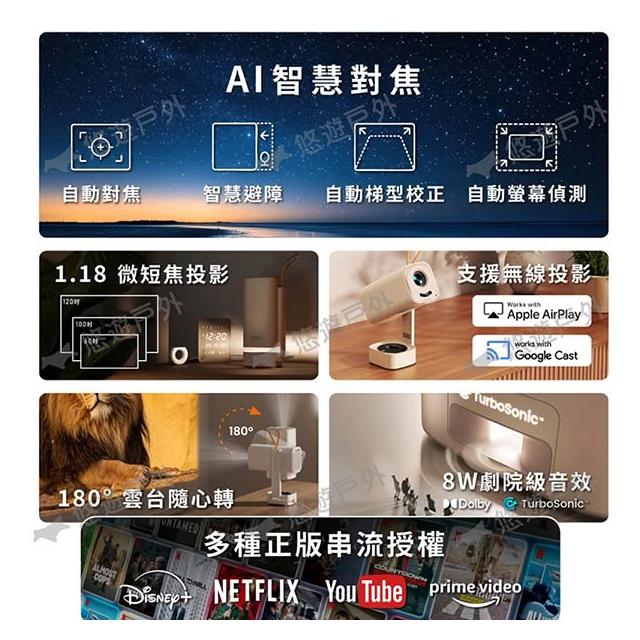 YABERYABER T1 Pro 小影霸 攜便式投影機 投影機 藍芽5.4 杜比喇叭 高解析 聯發科 追劇 居家露營 悠遊戶外