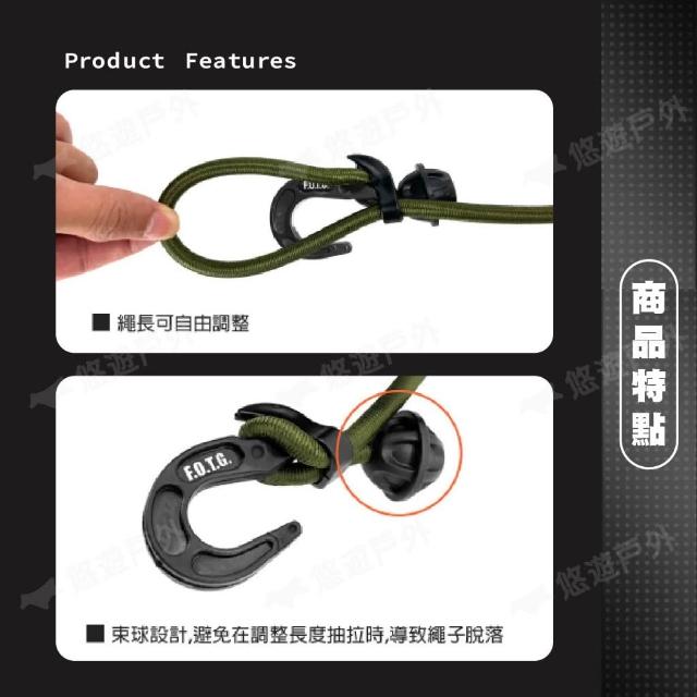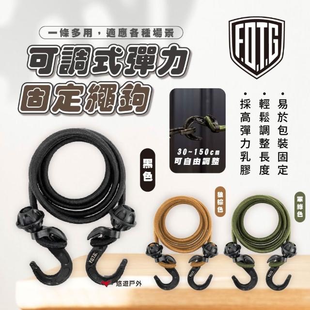FOTG可調式彈力固定繩鉤 黑色.軍綠色.狼棕色 掛繩 彈力繩 150cm 露營 悠遊戶外