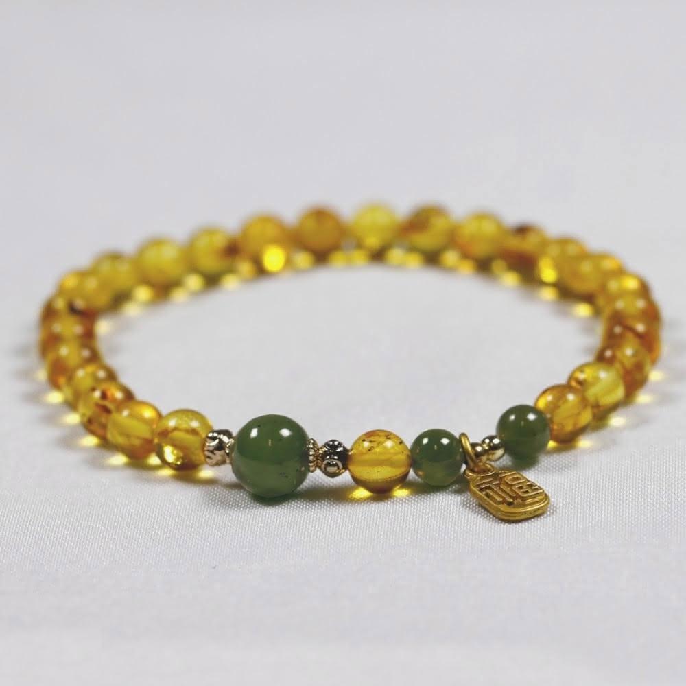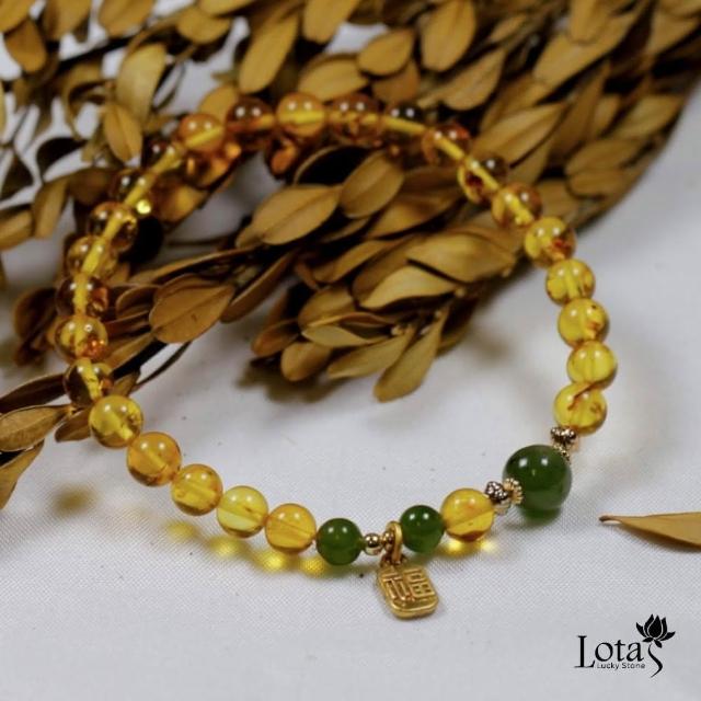 Lotas 納福|波羅的海棕珀 碧玉福字手鍊 限時特惠 (琥珀,台灣玉,碧玉)