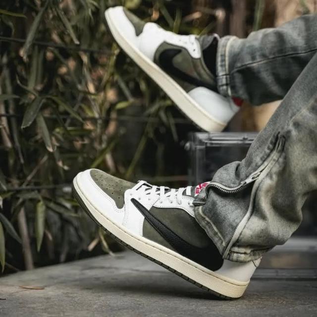 NIKE 耐吉Travis Scott x Nike Air Jordan 1 Low OG Medium Olive 橄欖綠 倒鉤 DM7866-200